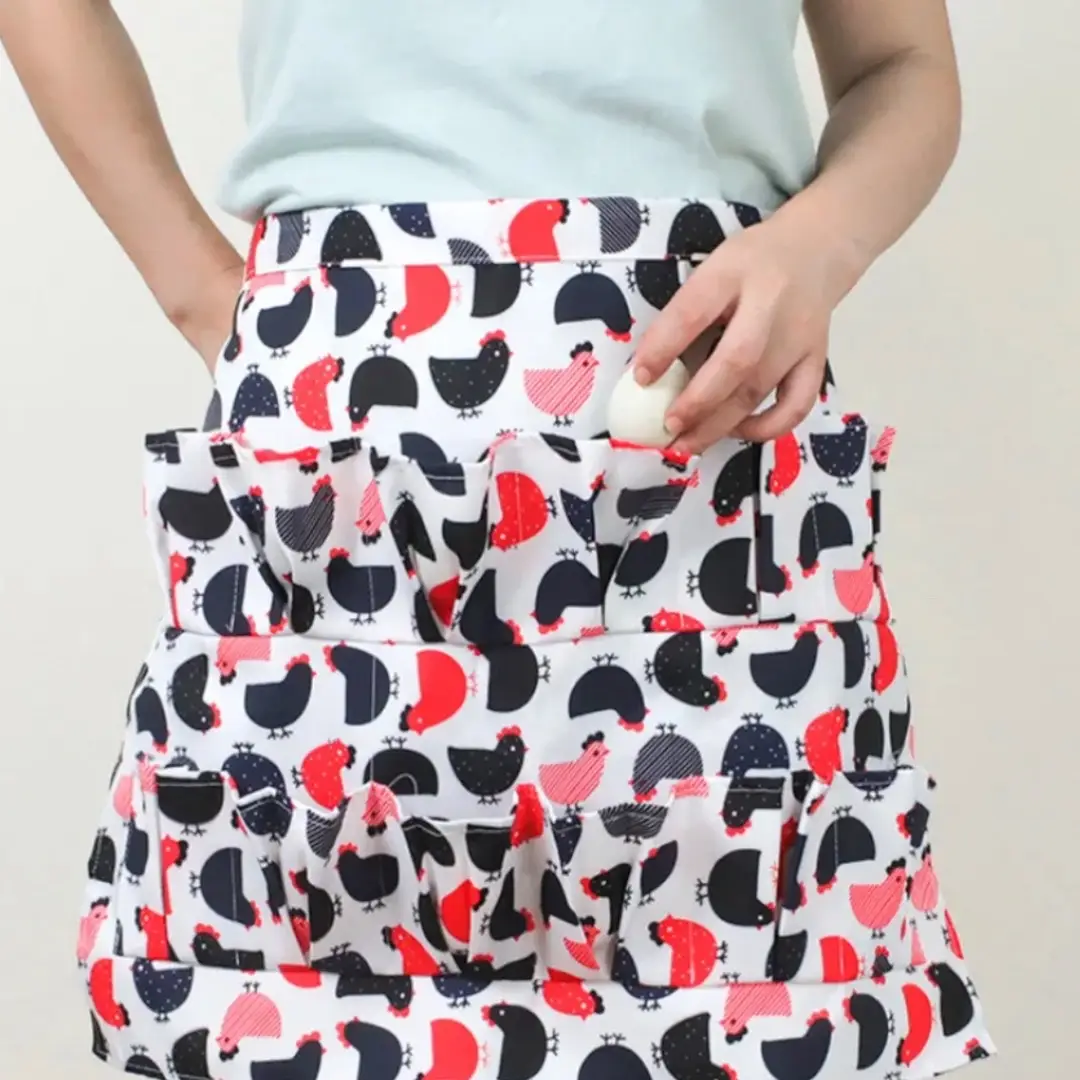 - Stylish and Convenient: White apron with red, black, pink, or grey hen prints.